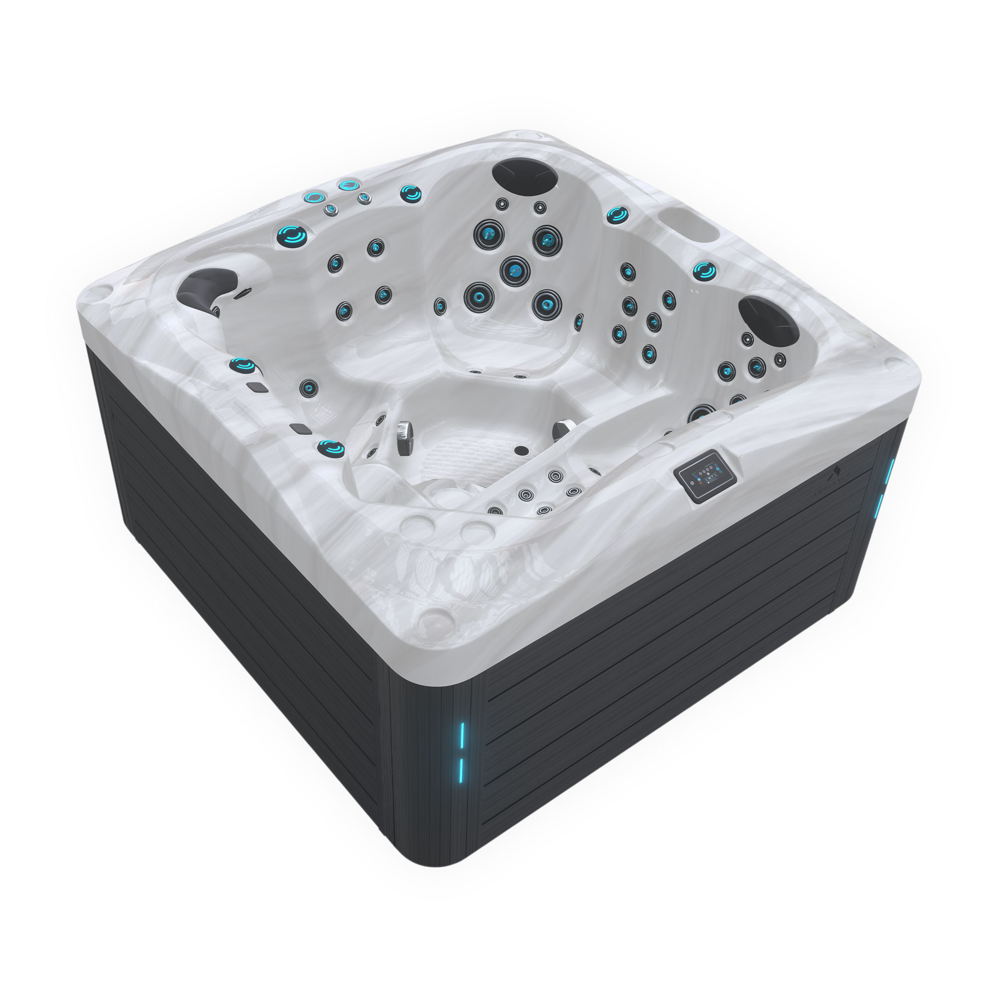 The distinctive styling of the Diamond Cut design is likely the first thing you’ll notice on the Ambiance® L615 hot tub spa. It’s evident that every detail in this luxurious hot tub exceeds the highest quality standards. Room for 6 people, with a lounger and five seats, the Ambiance® L615 is a larger spa, that measures 89” x 89” x 37”. 67 exclusive two tone, chrome water jets and a dual-speed pump allows muscles to be massaged in very different ways. These nozzles are extremely effective.